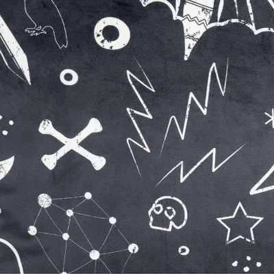 Trick or treat! This spooky pillow is the perfect addition to your Halloween decor. Decorate your home in ghoulish style with this festive Halloween Elements Decorative Pillow. Printed on black velvet, these fun graphics reveal ghostly and spirited fun. With its striking design, this pillow is sure to be a hit at your next Halloween party.