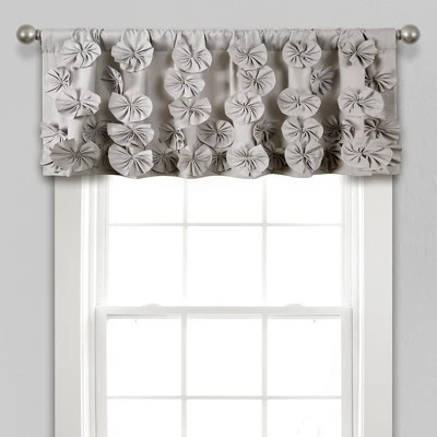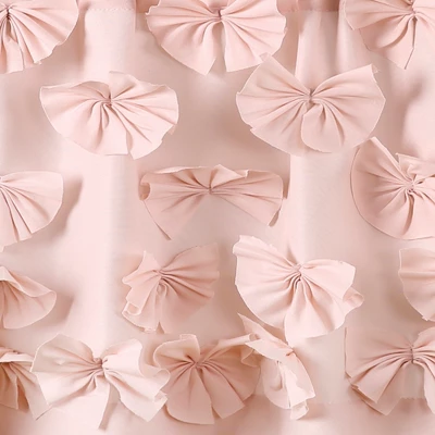 Lush Décor’s gorgeous Riley Valance features cascades of handmade bows covering the full width of the valance. The feminine design of this Riley Valance lends charm and luxury to the ambience of any room in your home – your bedroom, living room, bathroom, dining room or even a nursery. The textured look of this Riley Valance is certain to brighten your space. It would look great in any room where you want to let it plenty of natural light. This Riley Valance measures 18 inches high and 52 inches wide. These are unlined hanging easily with a 1.5″ rod pocket. Due to the delicate nature of the bows, we do recommend that you dry clean them as needed. Part of the Riley Collection. Oeko-Tex Certified.
