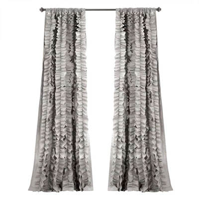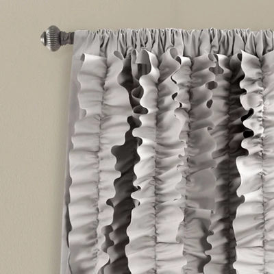 The Belle Window Curtain features flowing hand-crafted vertical ruffles, turning your windows from ordinary to extraordinary. The fabric is so soft and lies beautifully from top to bottom. The Belle Window Curtain is among our bestselling window treatments. The ruffles add texture to your space and are sure to draw the eye of visitors. These Belle window panels are ideal for the lovers of shabby chic style, as well as those who enjoy fancy and frilly home decor. These curtains would look fabulous in your bedroom, living room or dining room. Being semi-sheer, the Belle Window Curtain will allow ample amounts of natural light into your home while still providing sufficient privacy. The Belle Window Curtain is 84 inches long and 54 inches wide. This style is sold by the individual panel. Installation is easy with a three-inch rod pocket. The panels will slide easily onto your curtain rod, or you can hang them from the rod with clip rings. The ruffles are extremely delicate; therefore, these window panels are dry clean only. Do not place these in a washing machine. Part of the Belle Collection.