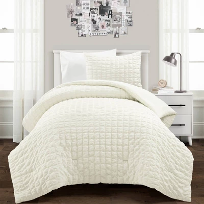 3pc Crinkle Textured Dobby Comforter & Sham Set – Lush Décor