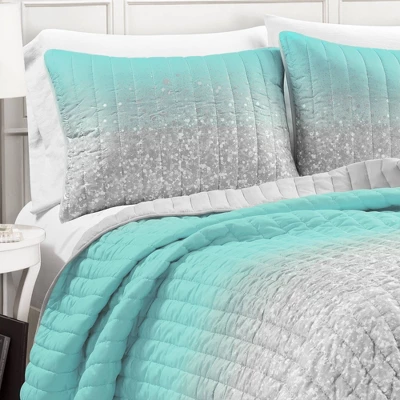 With Lush Décor Glitter Ombre Metallic Print Quilt give your child or teen’s bedroom a glamorous makeover with this glitter quilt set. The sparkly glitter design fades into a bright and beautiful quilt color for a very trendy look. Your child will love the printed sparkles and ombre style. it offers cozy and comfortable year-round use. Lush Decor. Inspiring your inner designer with unique home decor for every room and style.