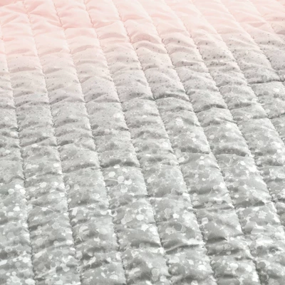 3pc Full/Queen Kids’ Glitter Ombre Metallic Print Quilt Set Blush/Gray – Lush Décor: Teen Bedroom Decor Bedding Set