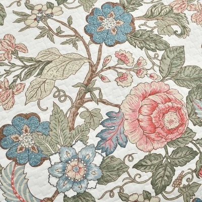 Soft yet distinct flower pattern enhances your space instantly. This Sydney 3 Piece Quilt Set will complete any country cottage bedroom. Made from 100% cotton, this set is soft to the hand and has wonderful quilting details. The reverse side features a more subdued pattern to complement the front. This gives you the opportunity to change the look of the room simply by flipping the quilt over. The matching reversible shams complete the look. This Sydney 3 Piece Quilt Set is generally loved by more mature adults. The print is very inviting, which makes it ideal for a guest bedroom as well as the master bedroom. The Sydney 3 Piece Quilt Set includes a soft 100% cotton quilt and two matching pillow shams. It is available in your choice of King and Full/Queen sizes. For your convenience, this set is safe to machine wash on the gentle cycle and tumble dry on a low setting. Steam or use a cool iron to release wrinkles. Part of the Sydney Collection.