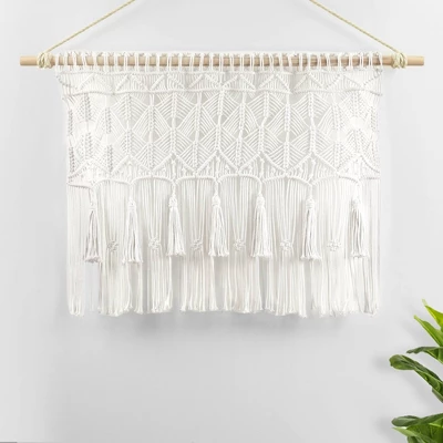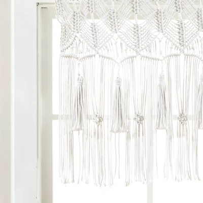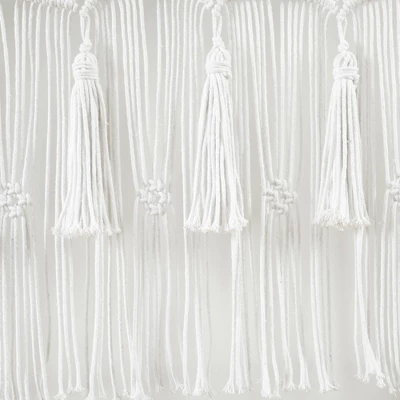 Welcome some relaxing elements of the bohemian style wherever you hang this stylish Boho Macrame Tassel Cotton Window Curtain. Detailed with large hanging tassels, this handcrafted panel is woven with 100% cotton. The versatility of this decorative curtain allows you to use this item as a window or doorway curtain, room divider, photo backdrop, or wall art.