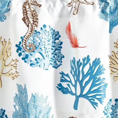 - Coastal Valance: Bring those breezy vacation vibes to your home when you hang our Coastal Reef Feather Light Filtering Valance. Enjoy those relaxing beachy vibes with this ocean inspired print displaying coral reefs, seashells, sea life, and feathers.