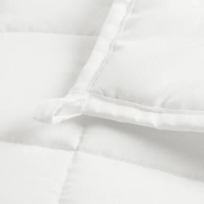- This 2 piece set includes 1 weighted blanket measuring 40″W x 60″L, and 1 reversible blanket cover measuring 41″W x 61″L. The weighted blanket stays secure inside the cover using the four internal ties and then closing with the hidden zipper.