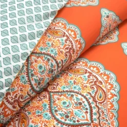3pc Boho Chic Cotton Duvet Cover Set Turquoise/Navy – Lush Décor
