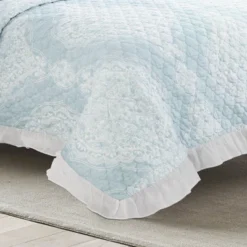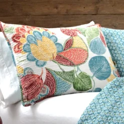 Lush Décor 3pc Botanical Bird And Flower Oversized Reversible Quilt Set White/Blue/Yellow