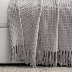 50″x60″ Solid Kantha Pick Stitched Yarn Dyed Cotton Woven Throw Blanket – Lush Décor