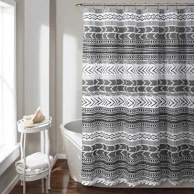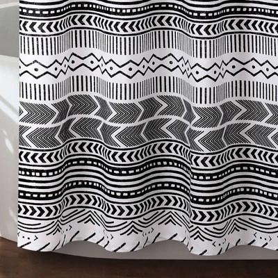 Lush Décor Hygge Geo stripe shower curtain is the ideal piece for your rustic, yet chic, bohemian bathroom decor.