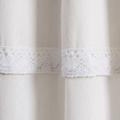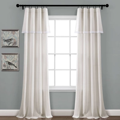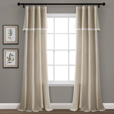 The stylish vintage look of this Linen Lace Window Curtain Panel Set adds texture and elegance to any room in your home. The lace border pops against the linen fabric. The slight weave variations are authentic to this natural fiber blend and create a relaxed look. Our Linen Lace Window Curtain Panel Set will instantly enhance the look of your room with its gorgeous ruffle top details. This set can be used in a formal dining room setting or a boho bedroom, and anything in between. The Linen Lace Window Curtain Panel Set is sold by the pair, so you will get two panels in each pack. The curtain measures 84 inches long and 38 inches wide. The Linen Lace Window Curtain Panel Set is made with a three-inch rod pocket, which gives you two options for hanging these in your home. You can slip the curtain rod through the rod pocket, or you can hang the panels from the rod with clip rings as shown in the photos. When it comes time to care for the Linen Lace Window Curtain Panel Set, we do recommend dry cleaning or hand washing. Part of the Linen Lace Collection. Oeko-Tex certified.