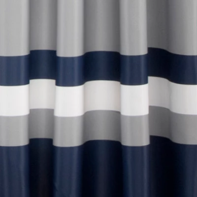 Frame the windows of your bedroom or office with this sophisticated style. The color blocking pattern gives a modern look and can easily be styled to your interior given its simple color scheme. This set is woven together with light filtering fabric that darkens the room, cuts the glare and helps regulate the temperature of the room. Easily hang these panels using the nickel colored grommets located at the top. Each panel of this curtain set has a 52 inch width. Please refer to the label for full care instructions.