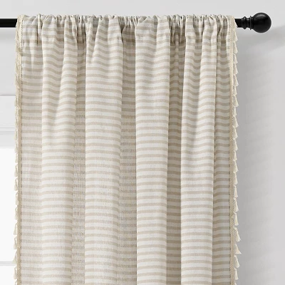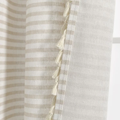 - The horizontal stripes and textured tassels on this window curtain set transform your space into a relaxing oasis.