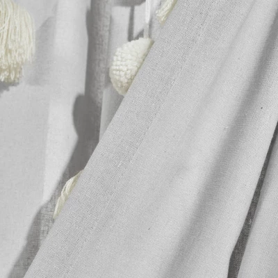 Dress your windows with fun and elegant style with this faux linen curtain featuring pom poms of various sizes cascading down the top portion of the panel. The pom pom tassels create a waterfall effect, creating a high fashion look for your home. This panel can work in so many design themes, from boho, to Hollywood glitz and glam, and so much more. Use these panels in a bedroom, nursery or home office. This curtain will offer ample privacy while letting in plenty of natural light. This window curtain is sold by the single panel, so you will need to purchase two to get the look in the photo. Each panel measures 52 inches wide and 63 inches long. This window panel has a 3-inch rod pocket, so you can slide the curtain rod through the rod pocket, or you can hang the panels from the rod with clip rings. Please refer to the care label for full instructions before cleaning.