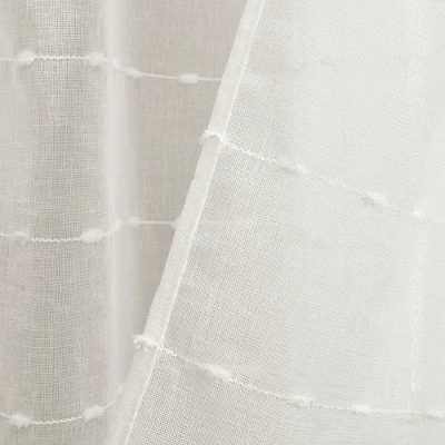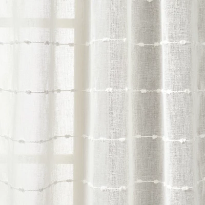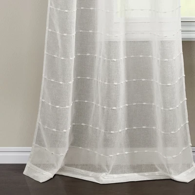 Brighten your home with this rustic curtain set. The sheer fabric is embellished with tufted stripes that add texture while allowing natural light into your space. The neutral colors fit almost any style from modern farmhouse to coastal. Perfect on their own or layered, this set includes two window panels, available various lengths and colors. Installation is easy with the 3″ back tab/rod pocket. Machine washable for easy care.