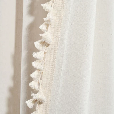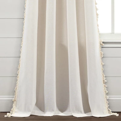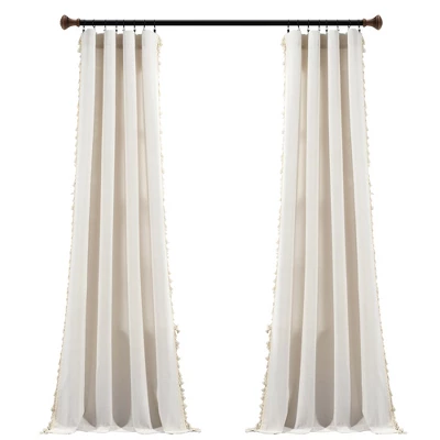 This unique window curtain panel will decorate your space with fun tassels and a classic style. From top to bottom, each side of this panel is lined with little tassel details that bring personality to your space. Sold by the single panel. This window curtain is a must have! The fun detailing along the side brings character to your home and you’ll love the added embellishment to your decor. The length of each panel is lined with small tassels creating a slightly boho styled effect. Each panel measures 40 inches across and is sold as a single panel. Easily hang this by sliding a curtain rod through the three inch rod pocket. Please refer to label for full care instructions.