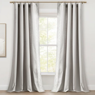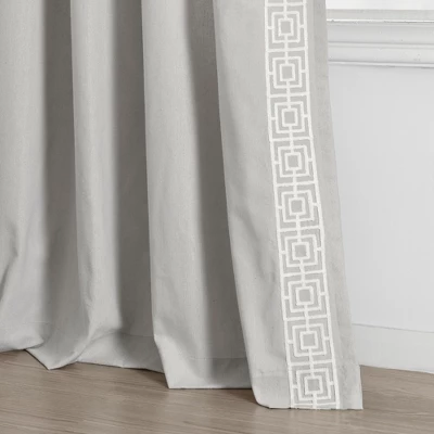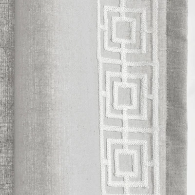 Crafted with meticulous detail, this curtain redefines elegance. The exquisite embroidery adds sophistication, while the clean lines maintain a modern aesthetic. Elevate your space with a window treatment that embodies luxury and current design trends. This curtain panel is made with a 3-inch rod pocket on both the top and the bottom, so you can choose which side you want the border trim on before you hang, and you can switch it if you choose. Showcase your luxurious taste with this embroidered curtain panel. This simple look and modern detailed border enhances your space’s style and frames your windows with a linen-like touch. Sold as a single panel, this curtain has a 52 inch width. Please refer to label for full care instructions.
