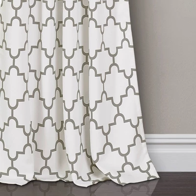 Our Bellagio Room Darkening Window Curtain Panel Set creates an interesting and eye-catching look in your home with a distinct geometric trellis pattern. The style is sure to turn heads. Printed on light blocking fabric, these panels help to filter out light and heat. While not full blackout, this Bellagio Room Darkening Window Curtain Panel Set will effectively filter out much of the light, heat and sound coming in from outside and provide plenty of privacy from onlookers. This Bellagio Room Darkening Window Curtain Panel Set is ideal for a bedroom, living room, dining room or home office. The Bellagio Room Darkening Window Curtain Panel Set is sold by the pair, so each order will come with two panels. Each panel, measures 52 inches wide and is available in your choice of length. Hanging these curtains is easy as can be with a three-inch rod pocket that simply slides onto your curtain rod. You also have the option to hang these from your curtain rod with clips. Caring for these curtains is very simple as they are safe to machine wash and tumble dry. A handheld steamer will take out any wrinkles or folds from packaging. Part of the Bellagio Collection.