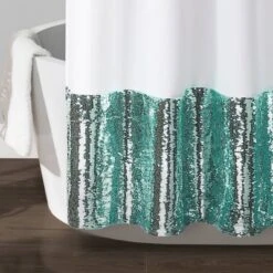 Lush Décor Jacquard Wave Shower Curtain Soft White: Polyester, Buttonhole Top, Machine Washable