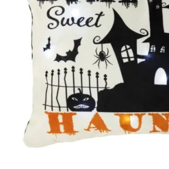 13″x18″ Sweet Haunted Home LED Halloween Lumbar Throw Pillow White – Lush Décor